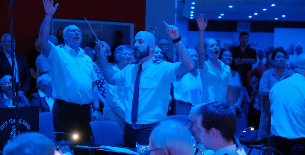 In a time of worship after the message, Salvationists from all generations, including a large group of young people, knelt at the mercy seat.