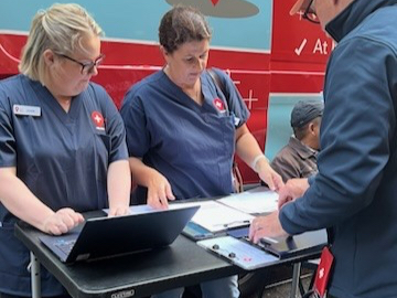 A line of people eagerly awaits the arrival of the mobile health van in the early evening. Its shiny blue and red colours, complete with friendly and important messaging, are a beacon of hope. A welcoming and enthusiastic team gathers for yet another session of serving those who need it the most, regardless of their healthcare status, financial situation, or whether they have a Medicare card or not.