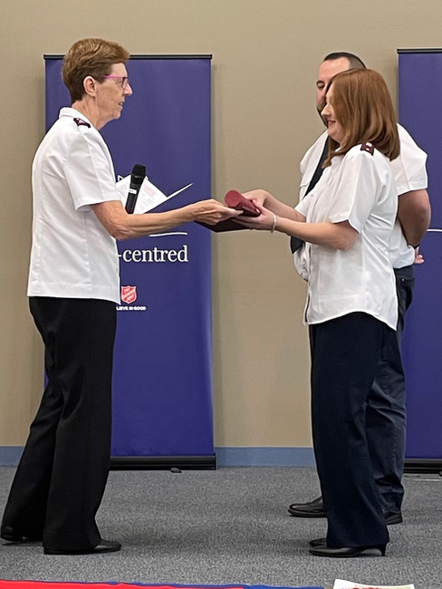 On the previous day, they had attended a small but holy gathering to sign their officer covenants. The gathering included the participation of Commissioner Miriam Gluyas, Colonels John and Lani Chamness, Lieut-Colonel Brenda Young and Majors Mark Everitt, Tracey Davies and Neil and Sharon Clanfield, as they each led brief sections of the service.